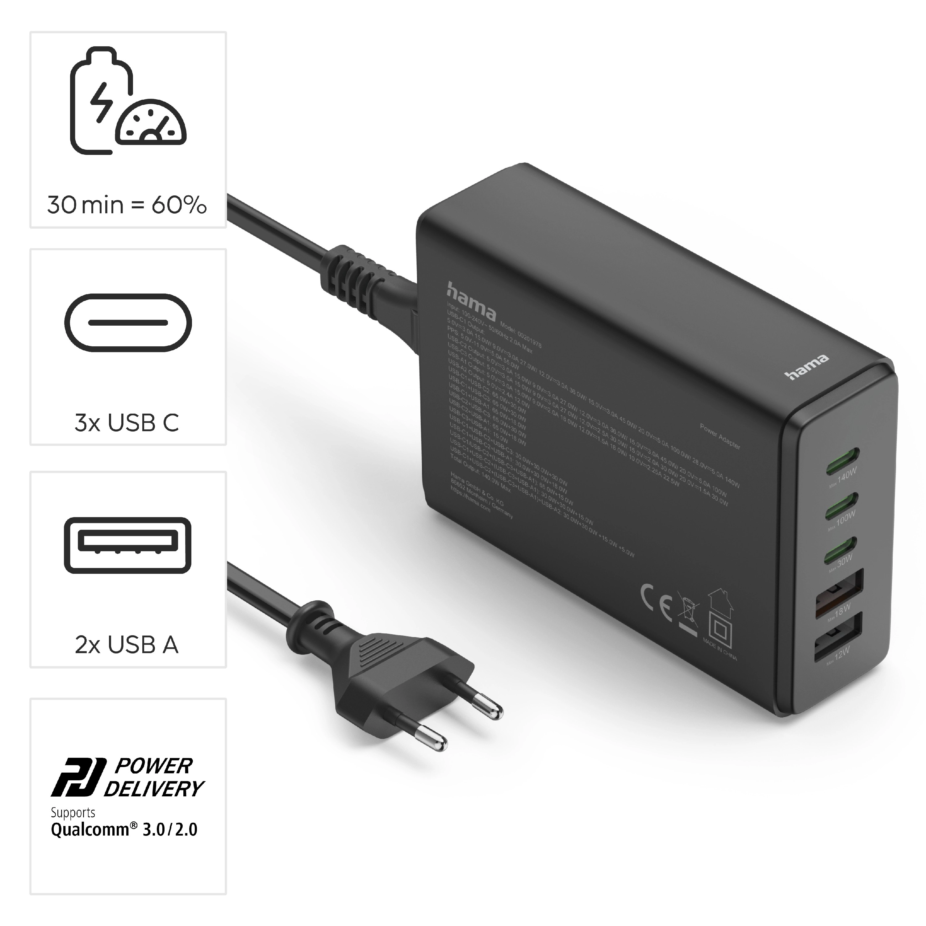 Ładowarka USB Hama 201978 140W 3x USB-C, 2x USB-A Czarny