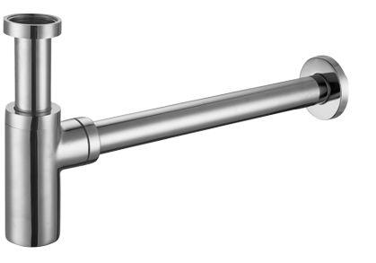 Syfon umywalkowy, ozdobny, wzór cylindryczny.Całkowita długość: 35 cm; maksymalna wysokość całkowita: 24,5 cm (możliwość przycięcia); długość rury przyłączeniowej do kanalizacji: 27 cm.Wykończenie: chrom.