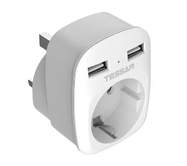 <h2>Adapter podróżny TS-611-UK-GRA</h2><p>Planujesz podróż służbową lub wakacje? Nie zapomnij zabrać ze sobą poręcznego adaptera Tessan TS-611-UK-GRA! Produkt oferuje jedno gniazdko AC i 2 porty USB-A, co umożliwia ładowanie i zasilanie aż 3 urządzeń jednocześnie. Jest na tyle kompaktowy, że zmieści się bez problemu w plecaku, a jego maksymalne obciążenie wynosi 13 A. Warto zaznaczyć, że adapter posiada wtyczkę typu G, idealną do gniazdek stosowanych w Wielkiej Brytanii. Należy jednak pamiętać, że produkt nie konwertuje napięcia, dlatego upewnij się, że korzystasz z urządzeń, których napięcie mieści się w zakresie 100-250 V. Dzięki temu adapterowi Twoje podróże będą jeszcze bardziej komfortowe i bezpieczne!</p> <h2>Możesz do niego podłączyć 3 urządzenia</h2><p>Model TS-611-UK-GRA wyposażony jest w jedno gniazdko AC i 2 porty USB-A, co umożliwia podłączenie aż 3 sprzętów jednocześnie. Jego moc znamionowa sięga 3250 W, a maksymalne obciążenie to 13 A, co pozwala na bezproblemowe podłączenie smartfona, tabletu, golarki elektrycznej, aparatu cyfrowego czy nawet konsoli do gier. Co więcej, porty USB-A oferują natężenie do 2,4 A, co gwarantuje szybkie naładowanie telefonu czy powerbanku w bardzo krótkim czasie. Teraz podróżowanie lub codzienne korzystanie z urządzeń będzie jeszcze łatwiejsze i wygodniejsze!</p> <h2>Lekki i kompaktowy</h2><p>Nie musisz rezygnować z wygody zasilania swoich urządzeń podczas podróży, wakacji czy delegacji. Dzięki kompaktowej konstrukcji adaptera TS-611-UK-GRA możesz zabrać go ze sobą praktycznie wszędzie – jego wymiary to zaledwie 70,9 × 53,7 × 48 mm. Bez trudu zmieścisz go w swojej walizce, plecaku czy nawet w torebce! Wykonany z trudnopalnego tworzywa ABS, ten adapter jest nie tylko wytrzymały, ale także odporny na uszkodzenia, co sprawia, że jest idealnym towarzyszem podróży. Teraz możesz cieszyć się pełną swobodą korzystania z urządzeń elektrycznych, gdziekolwiek się znajdujesz!</p>