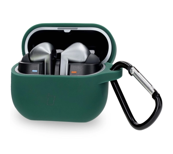 Etui na słuchawki Bizon Silikonowe z karabińczykiem do Samsung Galaxy Buds 3/3 Pro Ciemnozielony
