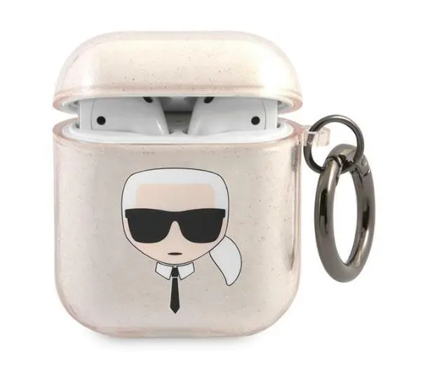 Etui na słuchawki Karl Lagerfeld KLA2UKHGD Glitter Karl`s Head AirPods Cover Złoty