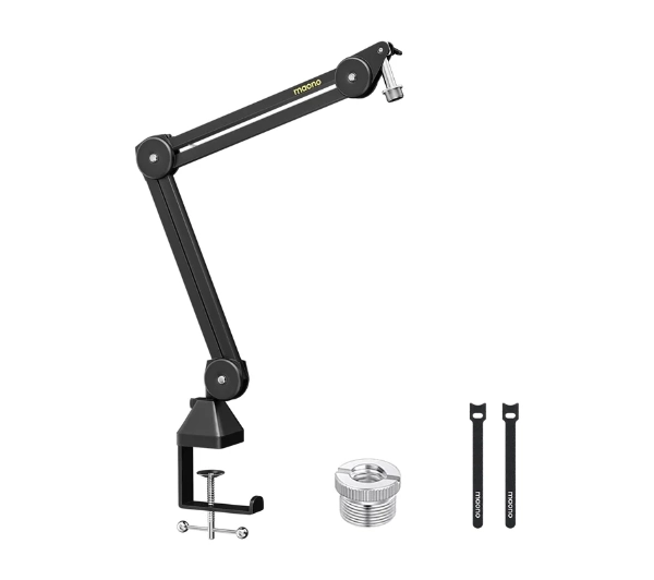 <h2>Uchwyt do mikrofonu MAONO BA37</h2><p>Maono BA37 to wytrzymałe ramię mikrofonowe, które bez problemu udźwignie sprzęt o masie do 2,5 kg, oferując większą nośność niż wiele podobnych konstrukcji. Solidna stalowa budowa w połączeniu z ukrytymi sprężynami skutecznie redukuje drgania i zapewnia stabilność podczas nagrań. Dzięki temu możesz skupić się na pracy bez zakłóceń i niepożądanych wibracji. Uchwyt doskonale sprawdzi się zarówno z mikrofonami dynamicznymi, jak i pojemnościowymi, również tymi cięższymi.</p><h2>Precyzyjne ustawienie w każdej sytuacji</h2><p>Ramię oferuje pełny obrót 360° oraz dodatkowe zakresy regulacji pod kątem 120°, 225° i 270°, co pozwala dokładnie dopasować pozycję mikrofonu do własnych potrzeb. Każdy segment ma długość 35 cm, co zapewnia dużą elastyczność ustawienia. Wbudowane sprężyny działają płynnie i bezgłośnie, dzięki czemu zmiana pozycji nie zakłóca pracy. Konstrukcja umożliwia ustawienie uchwytu blisko ściany lub monitora, co pomaga lepiej zagospodarować przestrzeń na biurku.</p><h2>Stabilne mocowanie i szerokie możliwości zastosowania</h2><p>Udoskonalony zacisk typu C pasuje do blatów o grubości do 6 cm i dzięki większej powierzchni styku wynoszącej 6,6 × 6,6 cm zapewnia pewne i stabilne mocowanie. To rozwiązanie minimalizuje ryzyko przesunięć podczas użytkowania. Dołączony metalowy adapter 3/8" do 5/8" zwiększa kompatybilność uchwytu z wieloma popularnymi modelami mikrofonów. Dzięki temu możesz łatwo dopasować go do swojego zestawu bez dodatkowych akcesoriów.</p>