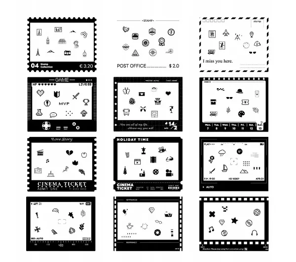 Naklejki LoveInstant LI00492 Ramki Czarno-biały 12 sztuk