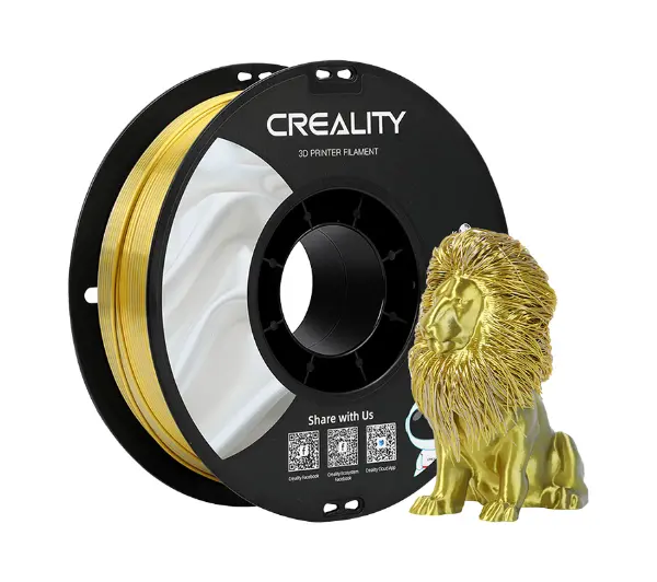<h2>Filament CR-Silk PLA Creality (złoto-srebrny)</h2><p>Filament CR-Silk PLA od Creality to idealne rozwiązanie dla osób, które poszukują eleganckiego wykończenia i wyjątkowej estetyki w swoich projektach. Dzięki metalicznemu połyskowi filament doskonale nadaje się do drukowania ozdób, figurek, biżuterii oraz elementów dekoracyjnych, nadając im luksusowy wygląd bez potrzeby dodatkowej obróbki. Wykonany z przyjaznych dla środowiska materiałów, CR-Silk PLA jest kompatybilny z szeroką gamą drukarek Creality i wyróżnia się dużą wytrzymałością.</p> <h2>Płynność i szybkość drukowania</h2><p>Dzięki starannie kontrolowanemu uzwojeniu filament CR-Silk PLA pozwala na płynne drukowanie z prędkością do 100 mm/s. Odporność na splątanie i niewielka kurczliwość znacząco zwiększają wygodę użytkowania, eliminując przestoje i ograniczając zużycie materiału. To doskonały wybór zarówno do precyzyjnych detali, jak i większych projektów, gdzie liczy się płynność i dokładność wydruku.</p> <h2>Estetyka i wytrzymałość</h2><p>Filament CR-Silk PLA oferuje nie tylko elegancki wygląd, ale również solidność. Jego perłowa powierzchnia jest gładka i trwała, co przekłada się na długotrwały efekt wizualny. Materiał charakteryzuje się wysoką wytrzymałością na rozciąganie (35 MPa) i zginanie (67 MPa), dzięki czemu tworzone modele są odporne na uszkodzenia. Wykorzystane do jego produkcji ekologiczne materiały PLA sprawiają, że filament jest zarówno trwały, jak i przyjazny dla środowiska.</p>
