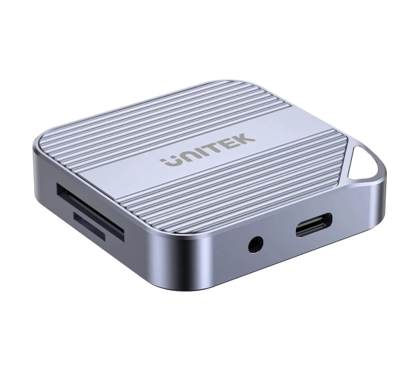 Opis: Magnetyczny czytnik kart pamięci Unitek z gniazdami SD i microSD, oferujący szybki transfer danych i wygodne podłączenie do urządzeń. PD100W 4K@60Hz 5Gbps