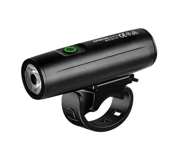 Opis: SUPERFIRE BL14 to przednia, ładowalna lampka rowerowa o jasności 400 lm, wykonana z wytrzymałego stopu aluminium. Zapewnia szeroki strumień światła i oświetla drogę do 100 m, oferując 3 tryby pracy (Strong, Low, Strobe). Wbudowany akumulator 2000 mAh zapewnia czas świecenia 3,5–5,5 godziny, a pełne ładowanie trwa około 3 godziny.
