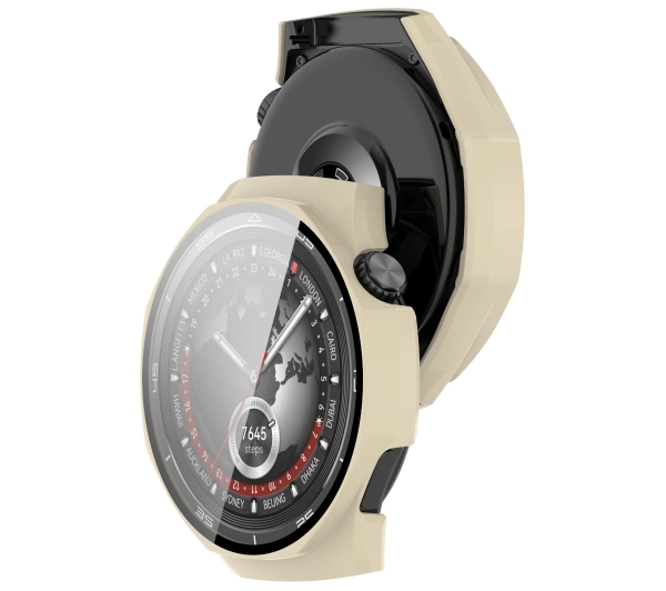 Nakładka na tarczę Bizon ze szkłem do Huawei Watch GT5 Pro 46 mm beżowy