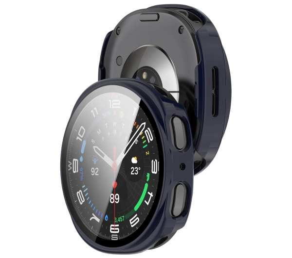 Nakładka na tarczę Bizon ze szkłem do Samsung Galaxy Watch 8 44 mm niebieski