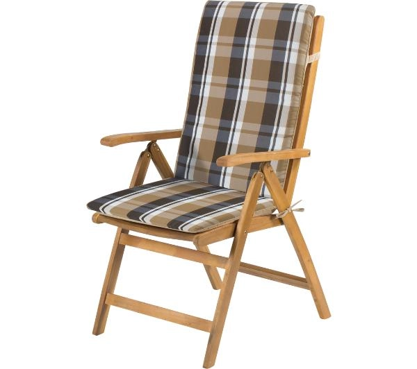 Wodoodporne pokrowce wykonane w 100% poliestru. Wymiary: długość siedziska 42 cm, długość oparcia pleców 68 cm, szerokość 45 cm, grubość 5 cm. Kolor: kremowy w paski. Przeznaczony do użytku na zewnątrz.