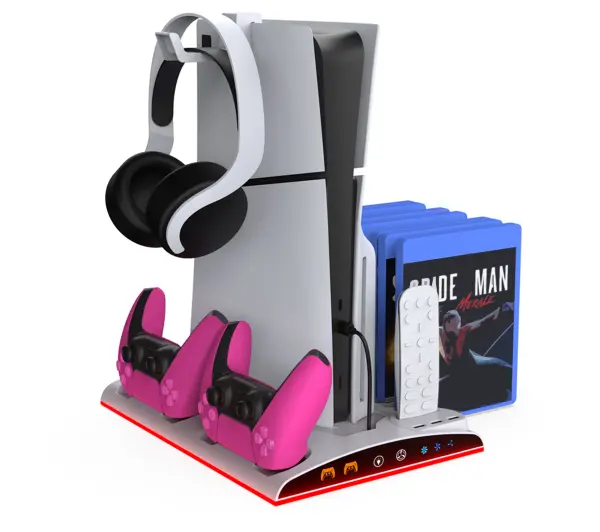 Informacje dodatkowe: jednoczesne ładowanie dwóch kontrolerów PS5, trzy poziomy prędkości wentylatora, wbudowane oświetlenie RGB