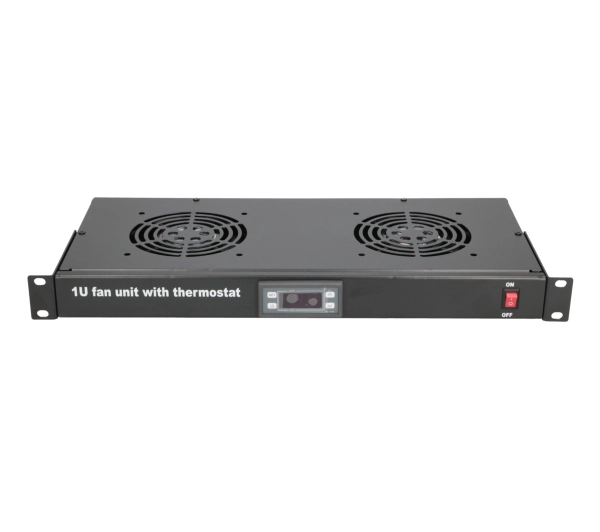 Dodatkowe informacje: Panel wentylatorów Extralink 19", 2 wentylatory, z termostatem, cyfrowy wskaźnik temperatury, łatwa regulacja, materiał: metal, przewód zasilający 1.7m, czujnik temperatury z przewodem 1.8m