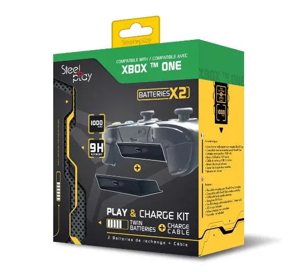 Informacje dodatkowe: zawiera 2 baterie o pojemności 1000 mAh i 3 metrowy podwójny kabel, kompatybilny z kontrolerami bezprzewodowymi Xbox One