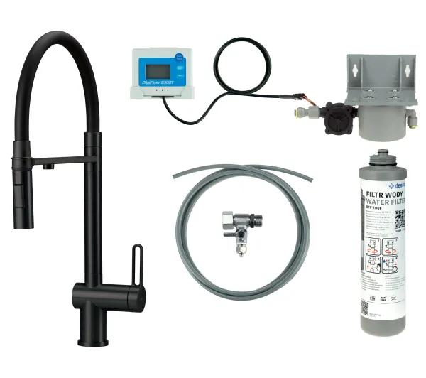 Wyposażenie: elementy do montażu, filtr do wody, karta gwarancyjna, wężyki podłączeniowe
