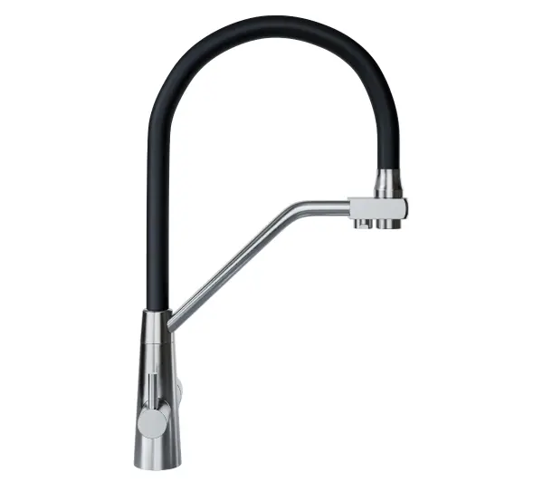 Informacje dodatkowe: bateria z podłączeniem do filtra, ceramiczna głowica, elastyczna wylewka, funkcja filtrowania wody, wyciągana wylewka jednostrumieniowa