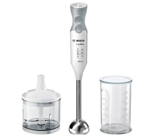 Innowacyjne i komfortowe blendery ErgoMixxNajważniejsze cechy urządzeniaSilnik o mocy 600 Wat zapewnia szybkie i doskonałe przetwarzanie żywności. Wysoka moc dostępna od ręki. Poczwórne ostrze gwarantuje gładką konsystencję. Specjalna konstrukcja stopy blendera zapobiega rozchlapywaniu. Uchwyt zapewniający bezpieczeństwo i komfort użytkowania Ergonomiczny kształt - idealnie układa się w dłoni. Bezpieczny dla zdrowia.<table> <tbody> <tr> <td> Regulacja prędkości 12 stopni Dopasuj prędkość blendera do własnych potrzeb Blender posiada kilka poziomów obrotów, dzięki czemu łatwo dopasujesz odpowiednią prędkość do różnego rodzaju produktów. Wybierz wolne mieszanie przy delikatnych produktach, a szybsze dla tych twardszych. </td> <td> </td> </tr> </tbody></table>Regulacja prędkości 12 stopniDopasuj prędkość blendera do własnych potrzeb Blender posiada kilka poziomów obrotów, dzięki czemu łatwo dopasujesz odpowiednią prędkość do różnego rodzaju produktów. Wybierz wolne mieszanie przy delikatnych produktach, a szybsze dla tych twardszych.<table> <tbody> <tr> <td> </td> <td> 2 przyciski Dodatkowy przycisk Turbo zapewnia maksymalną moc za dotknięciem jednego przycisku, dzięki czemu szybko i z łatwością zrealizujesz swoje pomysły, otrzymując idealne rezultaty za każdym razem. </td> </tr> </tbody></table>2 przyciskiDodatkowy przycisk Turbo zapewnia maksymalną moc za dotknięciem jednego przycisku, dzięki czemu szybko i z łatwością zrealizujesz swoje pomysły, otrzymując idealne rezultaty za każdym razem.<table> <tbody> <tr> <td> Nóż QuatroBlade - idealny efekt za każdym razem Wyjątkowo ostry i wytrzymały nóż QuattroBlade został wykonany z najwyższej jakości stali szlachetnej co zapewnia wyjątkowe efekty miksowania w krótkim czasie za każdym razem. Poczwórne ostrze gwarantuje szybkie przetwarzanie produktów, a unikatowy kształt stopy miksującej zapobiega jej zasysaniu do dna naczynia. </td> <td> </td> </tr> </tbody></table>Nóż QuatroBlade - idealny efekt za każdym razemWyjątkowo ostry i wytrzymały nóż QuattroBlade został wykonany z najwyższej jakości stali szlachetnej co zapewnia wyjątkowe efekty miksowania w krótkim czasie za każdym razem. Poczwórne ostrze gwarantuje szybkie przetwarzanie produktów, a unikatowy kształt stopy miksującej zapobiega jej zasysaniu do dna naczynia. <table> <tbody> <tr> <td> </td> <td> Czystość przede wszystkim Irytujące chlapanie podczas przygotowywania potraw to już przeszłość dzięki stopie miksującej o ulepszonej konstrukcji. Teraz wszystko, co robisz, jest proste, wygodne, a przede wszystkim czyste. </td> </tr> </tbody></table>Czystość przede wszystkimIrytujące chlapanie podczas przygotowywania potraw to już przeszłość dzięki stopie miksującej o ulepszonej konstrukcji. Teraz wszystko, co robisz, jest proste, wygodne, a przede wszystkim czyste.<table> <tbody> <tr> <td> Mini rozdrabniacz Mini rozdrabniacz idealny dla małych ilości żywności oraz kruszenia kostek lodu. </td> <td> </td> </tr> </tbody></table>Mini rozdrabniaczMini rozdrabniacz idealny dla małych ilości żywności oraz kruszenia kostek lodu.<table> <tbody> <tr> <td> </td> <td> Pojemnik do miksowania z miarką Sporządzone wcześniej: pyszną zupę, zdrowe smoothies, lub inne płynne potrawy, możesz zamknąć i przechować w specjalnym pojemniku w lodówce. Pojemnik zawiera miarkę, dzięki czemu doskonale sprawdzi się jako dozownik podczas przygotowywania przysmaków. </td> </tr> </tbody></table>Pojemnik do miksowania z miarkąSporządzone wcześniej: pyszną zupę, zdrowe smoothies, lub inne płynne potrawy, możesz zamknąć i przechować w specjalnym pojemniku w lodówce. Pojemnik zawiera miarkę, dzięki czemu doskonale sprawdzi się jako dozownik podczas przygotowywania przysmaków. <table> <tbody> <tr> <td> Antypoślizgowy uchwyt SoftTouch Już sam kontakt dłoni z uchwytem blendera obiecuje komfortową i bezpieczną obsługę. Uchwyt ma idealny, ergonomiczny kształt, a miła w dotyku, antypoślizgowa powłoka uprzyjemnia i usprawnia korzystanie z urządzenia przy wszelkich pracach. </td> <td> </td> </tr> </tbody></table>Antypoślizgowy uchwyt SoftTouchJuż sam kontakt dłoni z uchwytem blendera obiecuje komfortową i bezpieczną obsługę. Uchwyt ma idealny, ergonomiczny kształt, a miła w dotyku, antypoślizgowa powłoka uprzyjemnia i usprawnia korzystanie z urządzenia przy wszelkich pracach.<table> <tbody> <tr> <td> </td> <td> Obudowa z tworzywa sztucznego Projektanci firmy Bosch stawiają zawsze na materiały najlepszej jakości. Właśnie dlatego obudowy wykonane są ze sprawdzonego i przetestowanego tworzywa sztucznego. Ponadto są lekkie, niezwykle praktyczne i łatwe do utrzymywania w czystości. </td> </tr> </tbody></table>Obudowa z tworzywa sztucznegoProjektanci firmy Bosch stawiają zawsze na materiały najlepszej jakości. Właśnie dlatego obudowy wykonane są ze sprawdzonego i przetestowanego tworzywa sztucznego. Ponadto są lekkie, niezwykle praktyczne i łatwe do utrzymywania w czystości.<table> <tbody> <tr> <td> Przycisk zwalniający końcówkę Przycisk zwalniający końcówkę do miksowania – Jestem to jeden z systemów zabezpieczeń. Końcówkę można ściągnąć tylko wtedy, gdy wciśnie się odpowiednie przyciski. Nie odpada więc podczas pracy, co jest ogromnym plusem. </td> <td> </td> </tr> </tbody></table>Przycisk zwalniający końcówkęPrzycisk zwalniający końcówkę do miksowania – Jestem to jeden z systemów zabezpieczeń. Końcówkę można ściągnąć tylko wtedy, gdy wciśnie się odpowiednie przyciski. Nie odpada więc podczas pracy, co jest ogromnym plusem.<table> <tbody> <tr> <td> </td> <td> Akcesoria do mycia w zmywarce Praca z blenderem będzie teraz jeszcze przyjemniejsza, ponieważ po skończonym miksowaniu nie musisz już myć ręcznie trudnych zakamarków. Teraz końcówka miksująca oraz pozostałe elementy wyposażenia (poz