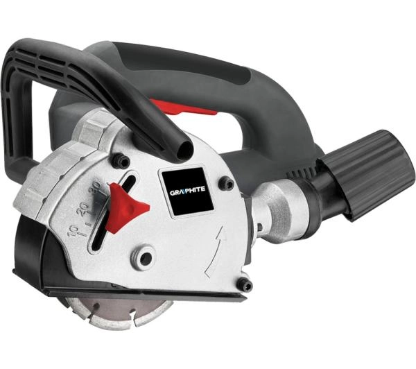 Wysokiej klasy bruzdownica GRAPHITE o mocy 1320W, przeznaczona do wykonywania wgłębień pod przewody. Urządzenie charakteryzuje się ergonomicznym kształtem, posiada nakładkę antypoślizgową na rękojeści głównej oraz wyprofilowaną rękojeść dodatkową. Bruzdownica ma możliwość regulacji głębokości cięcia w zakresie od 8 do 30 mm oraz szerokości od 8 do 26 mm.Maksymalna prędkość obrotowa urządzenia wynosi 9000 obrotów na minutę. Urządzenie posiada termiczne zabezpieczenie przeciążeniowe i blokadę przypadkowego włączenia. Elektronarzędzie wyposażono także w blokadę wrzeciona, umożliwiającą wymianę tarcz. Bruzdownica posiada system odprowadzania pyłu, ułatwiający pracę szczególnie wewnątrz budynków. W zestawie z bruzdownicą znajdują się: klucze montażowe, adapter, podkładki dystansowe i dłuto.