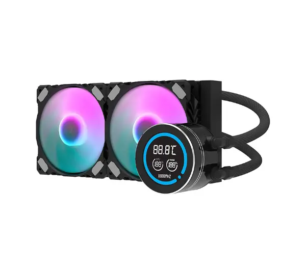 <h2>Chłodzenie wodne do procesora Darkflash DN-D240 (czarne)</h2><p>Darkflash DN-D240 to wydajne chłodzenie wodne 240 mm, które dzięki miedzianemu blokowi wodnemu oraz aluminiowemu radiatorowi zapewnia skuteczne odprowadzanie ciepła i stabilną pracę procesora. Podwójne wentylatory 120 mm z regulacją PWM, łożyskami hydraulicznymi oraz podświetleniem ARGB gwarantują efektywność i estetyczny wygląd systemu. Wyświetlacz LCD zapewnia kontrolę, a rurki IIR+EPDM wykazują odporność na wysokie temperatury.</p> <h2>Szeroka kompatybilność</h2><p>Chłodzenie DN-D240 jest kompatybilne z szeroką gamą procesorów Intel (115x, 1200, 1700) i AMD (AM3, AM4, AM5). Dzięki swojej uniwersalności sprawdzi się ono w różnorodnych konfiguracjach, umożliwiając modernizację komputera także w przyszłości.</p> <h2>Praktyczny wyświetlacz LCD</h2><p>Na bloku wodnym znajduje się wyświetlacz LCD o przekątnej 2,1 cala i rozdzielczości 480x480 px, który dostarcza kluczowych informacji o temperaturze CPU, RAM oraz prędkości pompy, umożliwiając pełną kontrolę nad parametrami chłodzenia. Obsługuje on aż 16,7 milionów kolorów.</p> <h2>Wydajność i cicha praca pompy</h2><p>Pompa z trzystopniowym silnikiem charakteryzuje się przepływem cieczy na poziomie 1,6 l/min, co zapewnia skuteczne chłodzenie procesora. Jej cicha praca pozwala na komfortowe korzystanie z komputera bez zbędnych zakłóceń.</p> <h2>Miedziany blok wodny</h2><p>Blok wodny, który powstał z miedzi, oferuje doskonałe przewodnictwo cieplne. Wysoka jakość wykonania zwiększa trwałość systemu i stabilność pracy procesora.</p> <h2>Wentylatory PWM z ARGB</h2><p>Wentylatory o średnicy 120 mm automatycznie regulują prędkość w zakresie 800–1800 RPM, osiągając maksymalny przepływ powietrza 61,7 CFM. Wyposażono je w trwałe łożyska hydrauliczne, zapewniające cichą pracę oraz żywotność wynoszącą do 40 000 godzin. Synchronizowane podświetlenie ARGB pozwala na stworzenie spójnego efektu wizualnego.</p> <h2>Solidna konstrukcja</h2><p>Radiator z aluminium gwarantuje efektywne rozpraszanie ciepła oraz wysoką odporność na uszkodzenia. Elastyczne rurki IIR+EPDM charakteryzują się odpornością na wysokie temperatury i ciśnienie, co zapewnia niezawodność chłodzenia nawet przy intensywnym użytkowaniu.</p> <h2>Oprogramowanie do zarządzania chłodzeniem</h2><p>Darkflash DN-D240 współpracuje z dedykowanym oprogramowaniem, które umożliwia monitorowanie parametrów pracy, dostosowanie prędkości wentylatorów oraz personalizację podświetlenia ARGB. Dzięki temu możesz precyzyjnie zarządzać systemem chłodzenia.</p>