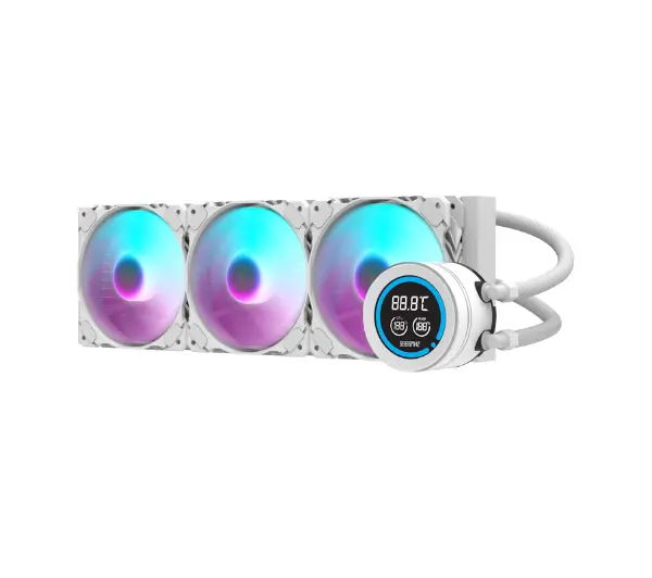 <h2>Chłodzenie wodne do procesora Darkflash DN-D360 (białe)</h2><p>Darkflash DN-D360 to wydajne chłodzenie wodne 360 mm, które dzięki miedzianemu blokowi wodnemu oraz aluminiowemu radiatorowi zapewnia skuteczne odprowadzanie ciepła i stabilną pracę procesora. 3 wentylatory 120 mm z regulacją PWM, łożyskami hydraulicznymi oraz podświetleniem ARGB gwarantują efektywność i estetyczny wygląd systemu. Wyświetlacz LCD zapewnia kontrolę, a rurki IIR+EPDM wykazują odporność na wysokie temperatury.</p> <h2>Szeroka kompatybilność</h2><p>Chłodzenie DN-D360 jest kompatybilne z szeroką gamą procesorów Intel (115x, 1200, 1700) i AMD (AM3, AM4, AM5). Dzięki swojej uniwersalności sprawdzi się ono w różnorodnych konfiguracjach, umożliwiając modernizację komputera także w przyszłości.</p> <h2>Praktyczny wyświetlacz LCD i oprogramowanie</h2><p>Blok wodny chłodzenia Darkflash DN-D360 został wyposażony w wyświetlacz LCD o przekątnej 2,1 cala, który oferuje rozdzielczość 480x480 px oraz obsługę 16,7 miliona kolorów. Ekran wyświetla kluczowe informacje, takie jak temperatura procesora (CPU), pamięci RAM oraz prędkość pompy, umożliwiając bieżące monitorowanie parametrów pracy systemu. Dzięki temu możesz dostosować ustawienia chłodzenia do swoich potrzeb bezpośrednio na urządzeniu. Produkt współpracuje także z dedykowanym oprogramowaniem, które pozwala na pełną kontrolę nad chłodzeniem, w tym regulację prędkości wentylatorów oraz monitorowanie temperatury</p> <h2>Wydajność i cicha praca pompy</h2><p>Pompa z trzystopniowym silnikiem charakteryzuje się przepływem cieczy na poziomie 1,6 l/min, co zapewnia skuteczne chłodzenie procesora. Jej cicha praca pozwala na komfortowe korzystanie z komputera bez zbędnych zakłóceń.</p> <h2>Miedziany blok wodny</h2><p>Blok wodny, który powstał z miedzi, oferuje doskonałe przewodnictwo cieplne. Wysoka jakość wykonania zwiększa trwałość systemu i stabilność pracy procesora.</p> <h2>Wentylatory PWM z ARGB</h2><p>3 wentylatory o średnicy 120 mm automatycznie regulują prędkość w zakresie 800–1800 RPM, osiągając maksymalny przepływ powietrza 61,7 CFM. Wyposażono je w trwałe łożyska hydrauliczne, zapewniające cichą pracę oraz żywotność wynoszącą do 40 000 godzin. Synchronizowane podświetlenie ARGB pozwala na stworzenie spójnego efektu wizualnego.</p> <h2>Solidna konstrukcja</h2><p>Radiator z aluminium gwarantuje efektywne rozpraszanie ciepła oraz wysoką odporność na uszkodzenia. Elastyczne rurki IIR+EPDM charakteryzują się odpornością na wysokie temperatury i ciśnienie, co zapewnia niezawodność chłodzenia nawet przy intensywnym użytkowaniu.</p>