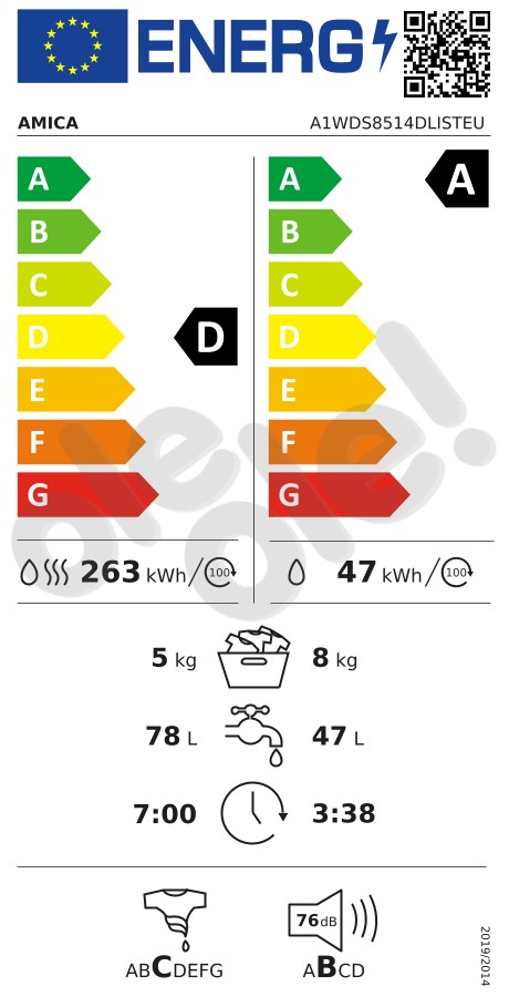 Amica A1WDS8514DLiStEU 46cm 8kg/5kg