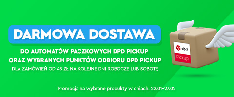 Dodaj do koszyka jeden albo większą liczbę produktów w cenie/łącznej cenie od 45 zł dla których dostępna jest dostawa do automatów paczkowych DPD Pickup oraz wybranych punktów odbioru obsługiwanych przez DPD Pickup.