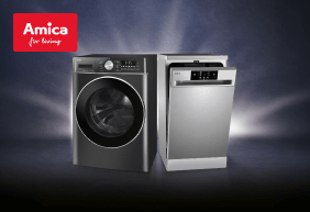 Kup pralkę lub zmywarkę marki Amica, zostaw opinię i odbierz zapas produktów do prania lub zmywania marki MILL.