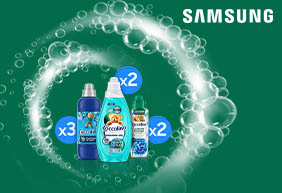Kup wybraną pralkę lub pralko-suszarkę Samsung, zostaw opinię, zarejestruj zakup i odbierz zapas środków do prania.