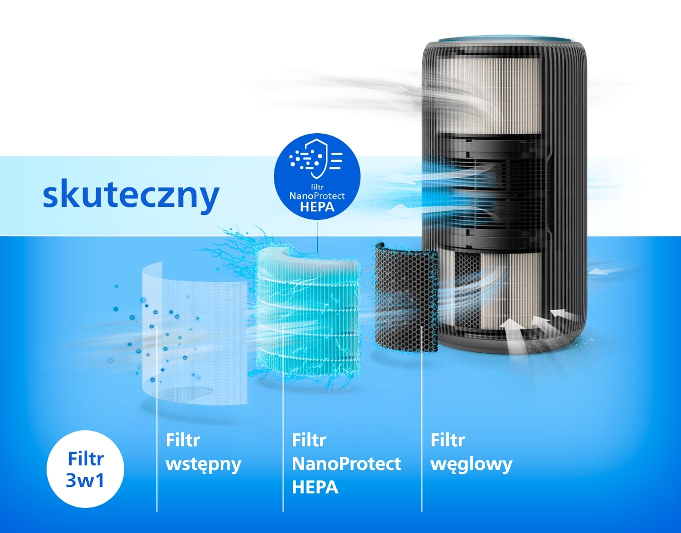 Usuwa do 99,97% wszystkich zanieczyszczeń w pomieszczeniu.