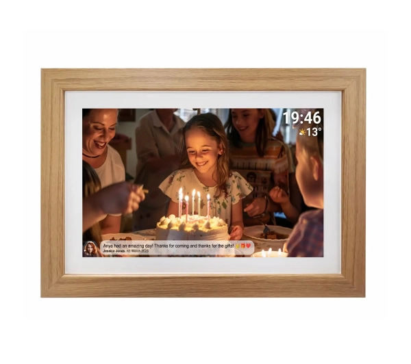 - Dodatkowe opcje: automatyczne włączanie i wyłączanie wyświetlacza o ustawionym czasie, automatyczny czujnik dopasowujący obraz do sposobu ustawienia ramki, bezprzewodowe przesyłanie zdjęć, możliwość obracania zdjęć, obsługa poprzez ekran dotykowy, odtwarzanie filmów Full HD, odtwarzanie filmów w jakości HD (720p), podświetlenie LED, prognoza pogody, przeglądanie miniatur / menedżer plików, przesyłanie zdjęć za pomocą aplikacji Frameo, różne tryby pokazu slajdów, WiFi, zegar, kalendarz, złącze USB