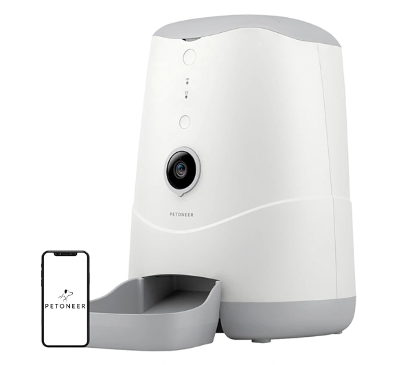 <h2>Dozownik karmy PETONEER Nutri Vision z kamerą 3,7l</h2><p>Petoneer PF007 Nutri Vision to nowoczesny dozownik karmy z wbudowaną kamerą, który umożliwia zdalne zarządzanie posiłkami oraz podgląd pupila w czasie rzeczywistym. Urządzenie oferuje pojemny zbiornik o objętości 3,7 litra, a jego obsługa jest możliwa zarówno przez aplikację mobilną, jak i komendy głosowe z wykorzystaniem Amazon Alexa. Model został zaprojektowany z myślą o kotach oraz małych psach i współpracuje z systemem Tuya, zapewniając wygodę oraz pełną kontrolę nad karmieniem zwierzaka.</p><h2>Kamera i tryb nocny</h2><p>Zintegrowana kamera HD (High Definition, wysoka rozdzielczość obrazu) o rozdzielczości 720p pozwala na bieżąco obserwować pupila, niezależnie od pory dnia. Funkcja widzenia nocnego umożliwia podgląd nawet przy ograniczonym oświetleniu, dzięki czemu zawsze masz dostęp do obrazu. Dodatkowo możesz zapisywać zdjęcia oraz nagrania wideo, aby zachować ważne momenty z życia swojego zwierzaka.</p><h2>Komunikacja głosowa w obie strony</h2><p>Urządzenie wyposażono w funkcję dwukierunkowej transmisji dźwięku, co pozwala na kontakt ze zwierzakiem na odległość. Możesz przywołać pupila, wydać mu polecenie lub uspokoić go swoim głosem, nawet gdy nie ma Cię w domu. To rozwiązanie zwiększa poczucie bezpieczeństwa zwierzęcia i ułatwia codzienną opiekę.</p><h2>Automatyczne harmonogramy karmienia</h2><p>Dzięki dedykowanej aplikacji możesz zaplanować godziny oraz wielkość porcji posiłków, dostosowując je do potrzeb swojego pupila. System przypomnień poinformuje Cię między innymi o konieczności uzupełnienia karmy, co pomaga utrzymać regularność karmienia i eliminuje ryzyko pominięcia posiłku.</p><h2>Sterowanie głosowe z Alexa</h2><p>Nutri Vision współpracuje z asystentem Amazon Alexa, co umożliwia obsługę urządzenia za pomocą prostych poleceń głosowych. Wystarczy jedno zdanie, aby podać zwierzakowi jedzenie, bez konieczności korzystania z telefonu czy podchodzenia do dozownika.</p><h2>Niezawodne działanie i system zabezpieczeń</h2><p>Wbudowane czujniki kontrolują ilość karmy w zbiorniku, a zastosowany system zapobiegający zacięciom gwarantuje płynne podawanie jedzenia. Dzięki temu masz pewność, że posiłek zostanie wydany bez problemów. Dozownik obsługuje suchą karmę o średnicy do 12 mm, co zapewnia jego szeroką kompatybilność.</p><h2>Praktyczna i łatwa w utrzymaniu konstrukcja</h2><p>Pojemny zbiornik o wielkości 3,7 litra pozwala na dłuższe użytkowanie bez konieczności częstego uzupełniania karmy. Urządzenie zaprojektowano w taki sposób, aby jego czyszczenie było szybkie i wygodne. Dodatkowy slot na powerbank (sprzedawany oddzielnie) umożliwia awaryjne zasilanie podczas przerw w dostawie prądu. Na obudowie znajduje się także przycisk, który pozwala natychmiast podać porcję karmy bez użycia aplikacji.</p>