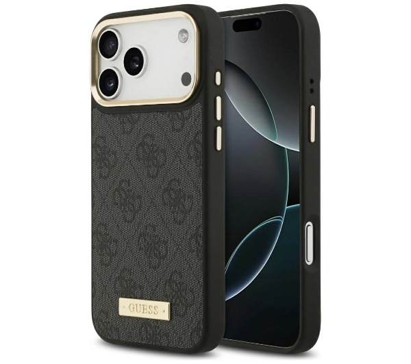 Etui Guess 4G Logo Plate MagSafe do iPhone 17 Pro Max czarny