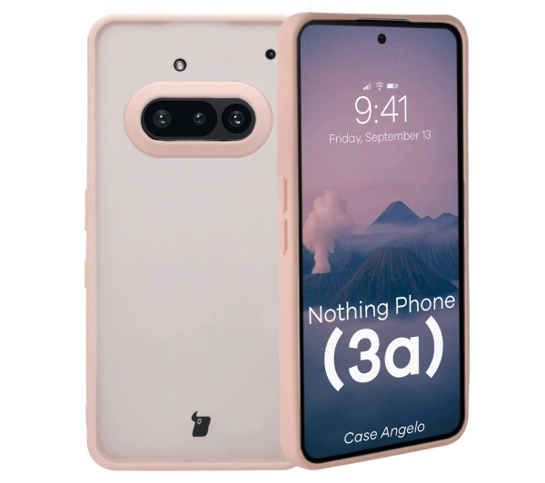 Etui Bizon Angelo do Nothing Phone 3a Półprzezroczysty z różową ramką