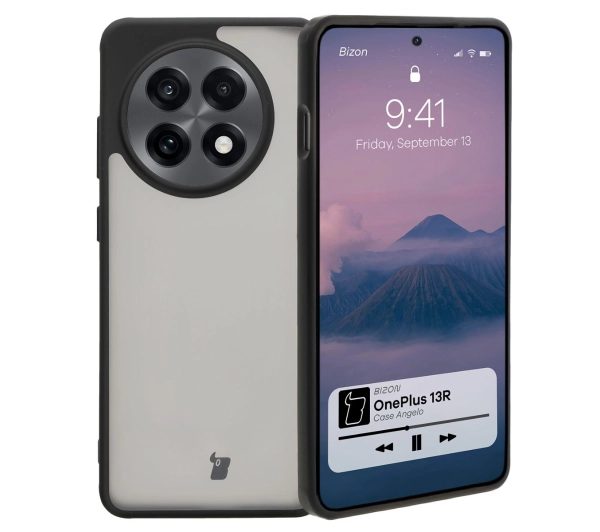 Etui Bizon Angelo do OnePlus 13R Przydymione z czarną ramką