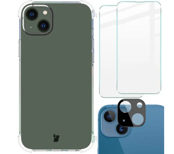 Etui Bizon elastyczne etui + 2x szkło hartowane + szkło na aparat Clear Pack do iPhone 14 Plus
