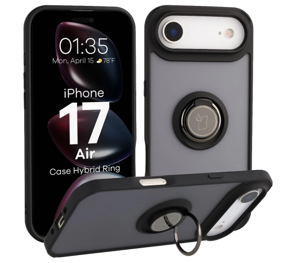 Etui Bizon z uchwytem na palec Hybrid Ring do Apple iPhone 17 Pro Max Przydymione z Czarną ramką