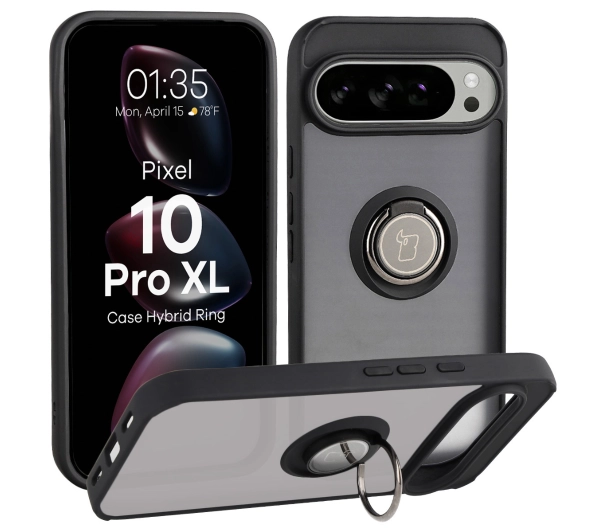 Etui Bizon z uchwytem na palec Hybrid Ring do Google Pixel 10 / Google Pixel 10 Pro Przydymione z Czarną ramką