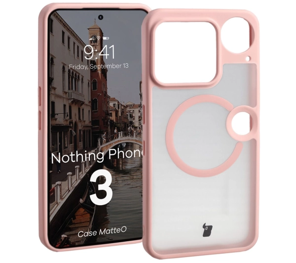 Etui Bizon MatteO z MagSafe do Nothing Phone 3 Półprzezroczyste z różową ramką