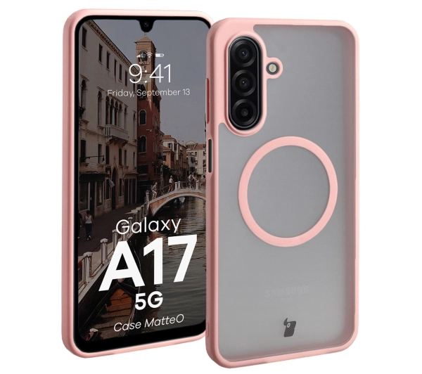 Etui Bizon MatteO z MagSafe do MatteO Samsung Galaxy A17 5G Pink Półprzezroczyste z różową ramką