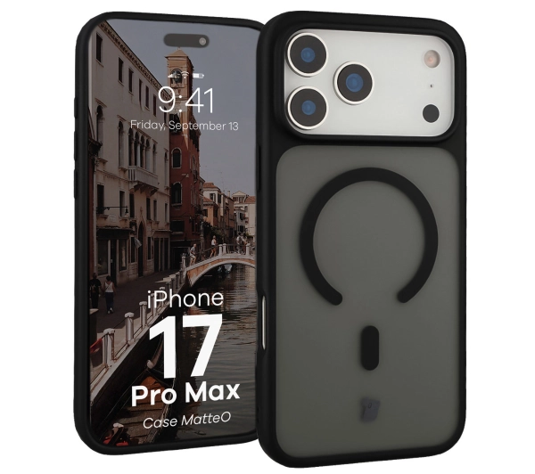 Etui Bizon MatteO z MagSafe do iPhone 17 Pro Max Półprzezroczyste z czarną ramką