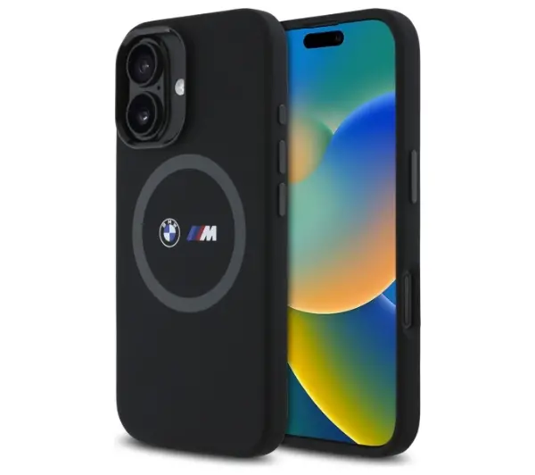 Etui BMW M Silicone Printed Ring MagSafe do iPhone 16 Czarny