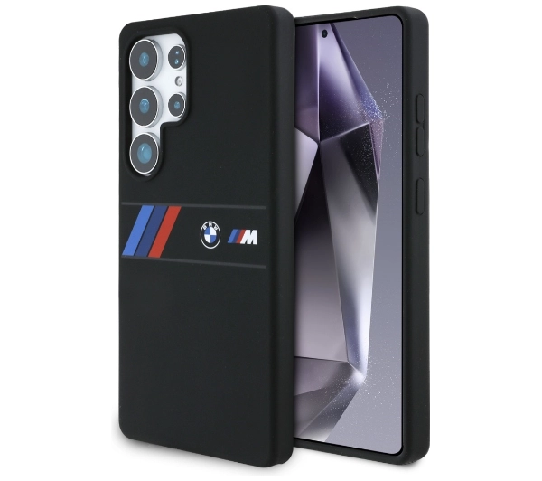 Etui BMW Silicone Middle Tricolor Stripes MagSafe do Galaxy S25 Ultra Czarny