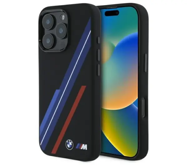 Etui BMW Silicone Random Lines MagSafe do iPhone 16 Pro Czarny