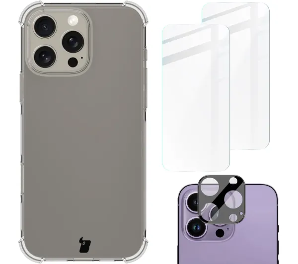 Etui Bizon elastyczne etui + 2x folia + szkło na aparat Clear Pack do iPhone 16 Pro Max
