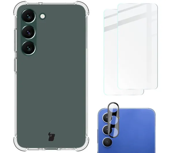 Etui Bizon elastyczne etui + 2x szkło hartowane + szkło na aparat Clear Pack do Galaxy S23 Plus
