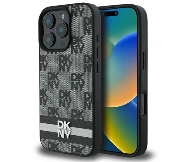 Etui DKNY Checkered Pattern & Printed Stripes do iPhone 16 Pro Czarny