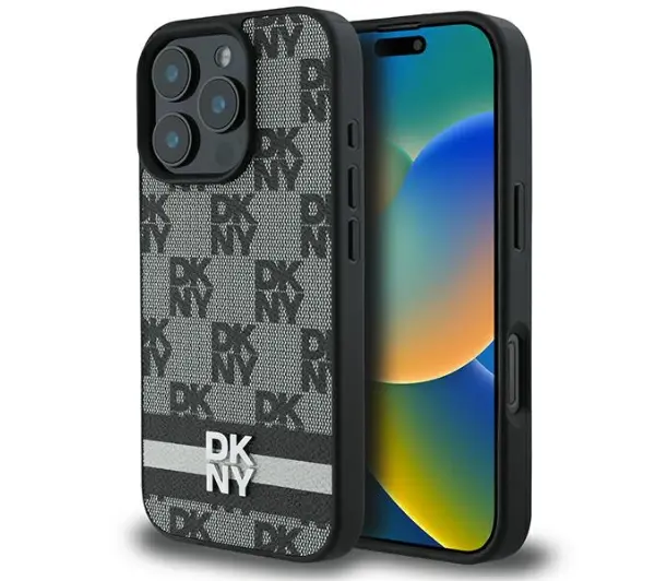 Etui DKNY Checkered Pattern & Printed Stripes do iPhone 16 Pro Max Czarny