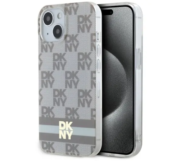 Etui DKNY IML Checkered Mono Pattern & Printed Stripes MagSafe do iPhone 15 Beżowy