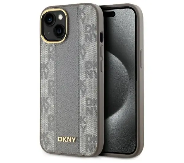 Etui DKNY Leather Checkered Mono Pattern MagSafe do iPhone 15 Plus Beżowy