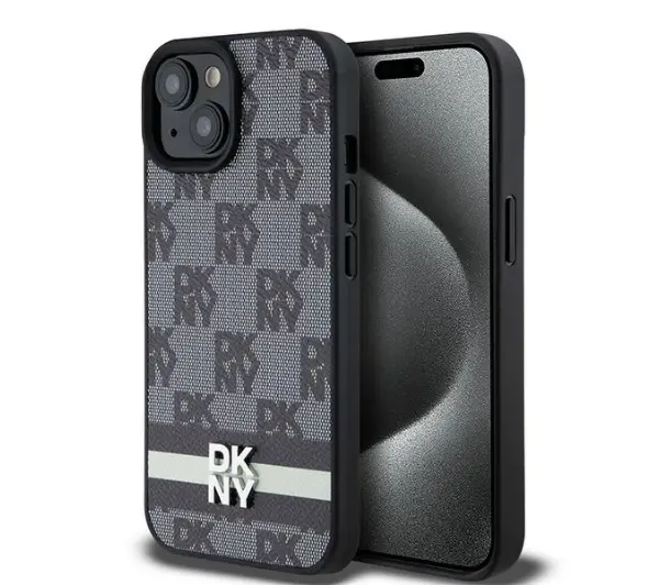 Etui DKNY Leather Checkered Mono Pattern & Printed Stripes do iPhone 14 Czarny