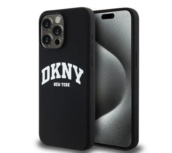 Etui DKNY Liquid Silicone White Printed Logo MagSafe do iPhone 15 Pro Max Czarny
