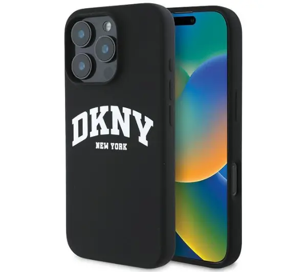 Etui DKNY Silicone White Printed Logo MagSafe do iPhone 16 Pro Czarny
